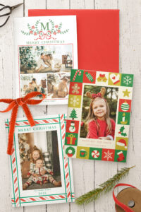 One of my favorite designs is “Holiday Tiles,” a festive holiday photo card featuring hand-drawn classic Christmas icons including candy canes, bells, snowflakes, gingerbread man, ornaments, and Santa hats. It’s classic with a touch of nostalgia, perfect for families who want something timeless yet personal.